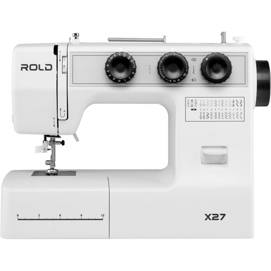 Rold X27 - электромеханическая швейная машина с набором из 25 программ, которые включают рабочие, эластичные, потайные, оверлочные и декоративные строчки. Петля выполняется в полуавтоматическом режиме в 4 шага. Плавная регулировка параметров дает возможность настраивать длину стежка до 4 мм и ширину строчки до 5 мм.